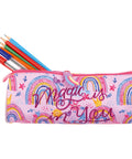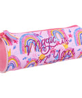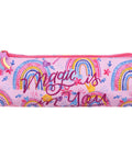 Estojo Simples 22x8,5x8,5cm Unicorn com design alegre e colorido, repleto de arco-íris, estrelas e detalhes encantadores. Ideal para transportar lápis, canetas e outros materiais escolares com estilo. Possui fecho resistente com puxador temático em forma de arco-íris, proporcionando praticidade e um toque de magia ao dia a dia escolar.