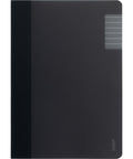 Caderno preto, agrafado e de tamanho A5, pautado com 48 folhas. Perfeito para anotações e esquemas, ideal para uso diário, seja no escritório, na escola ou em casa.