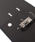 Pasta de arquivo A4 Tecnoline azul de lombada larga com capa dura de cartão. Para organizar documentos e colocar ou retirar folhas sempre que precisar. Pasta com 2 argolas de metal.