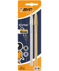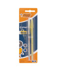Conjunto de 2 magníficas versões Shine da lendária esferográfica Bic Cristal em ouro (tinta azul) e prata (tinta preta) num blister de duas unidades. Escreva notas incrivelmente brilhantes e rabiscos espetaculares com uma esferográfica de 1,0mm de ponta média que desenha linhas de 0,32mm de espessura.