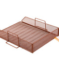O tabuleiro de secretária em tom rose gold alia elegância e organização ao espaço de trabalho. Fabricado em malha metálica resistente, permite guardar e organizar papéis, documentos e outros materiais de forma prática e acessível.