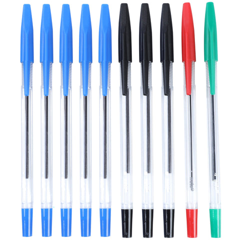 Conjunto de 10 esferográficas de traço médio de tinta de várias cores ideais para utilização diária em âmbito escolar, profissional e até em casa. A tinta seca rapidamente e tem uma longa duração. Tampa da cor da tinta com clip para prender nas folhas. Inclui 5 esferográficas azuis, 3 pretas, 1 vermelha e 1 verde.