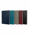 OXFORD SIGNATURE: cadernos cosidos com capas extraduras forradas com borracha com uma abertura total, fecho com elástico e fita marcadora de páginas.