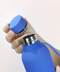 Garrafa térmica e hermética de aço inox de dupla camada e com uma terceira cobertura exterior em silicone, que permite agarrar melhor, potenciando ainda mais o valor térmico para frio e calor.
