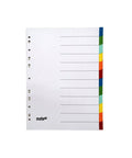 Separadores coloridos em cartão para organizar os documentos e facilitar a pesquisa de informação. Com vários furos laterais para serem usados em pastas de arquivo com 2 ou 4 argolas. Com 12 divisórias.