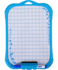 O quadro branco de tamanho A4 é a escolha prática para escrever e apagar com facilidade, sendo perfeito para uso escolar. Inclui um marcador e um apagador integrado, garantindo conveniência e organização em qualquer situação. O design com moldura azul e ícones divertidos nas margens torna-o apelativo para crianças. Uma solução divertida para o dia-a-dia!
