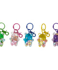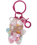 O porta-chaves urso é um acessório irresistível, cheio de cor e diversão! Com formato de ursinho transparente recheado de mini corações coloridos, este porta-chaves junta o charme do design kawaii com a utilidade do dia a dia.