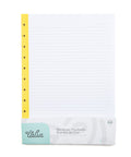 Recarga de 50 folhas pautadas A4, para Caderno Smart. As folhas podem ser facilmente organizadas em pastas de arquivo.