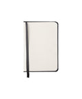 Caderno liso agrafado A6 com capa dura e cantos arredondados. Inclui elástico exterior para manter o caderno fechado protegendo as folhas, e ainda uma fita marcadora no interior. O caderno tem 96 folhas com gramagem de 80g/m2.
