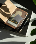 O diário é composto por dois blocos de notas diferentes, um pautado e outro pontilhado. Cada caderno contém 40 folhas de 80 g/m² cada. A capa macia é feita de couro PU e inclui uma faixa elástica para fechar de forma segura. Com dimensões de 4.7 x 7.7 x 0.6 polegadas, é o item essencial de viagem!