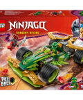 Faça as delícias dos pequenos ninjas com o primeiro carro de corrida pull-back NINJAGO de sempre! Rapazes e raparigas 7+ vão recriar a ação veloz da temporada 3 de NINJAGO A Ascensão dos Dragões com o Carro de Corrida Pull-Back do Lloyd (71828), empurrando-o para trás e lançando-o a alta velocidade. O elegante carro de corrida inclui 4 pneus, cockpit para uma minifigura e está decorado com espadas verdes. Acelere rumo à ação com o Lloyd no seu incrível Carro de Corrida Pull-Back! Equipado com 2 catanas douradas, o Lloyd está preparado para uma batalha épica contra o Guerreiro Draconiano, que quer controlar o mundo fundido de NINJAGO. Para usufruir do turbo, entre no cockpit, empurre o carro para trás e veja como se lança a uma velocidade incrível! Conseguirá o Lloyd parar o feroz Draconiano?