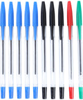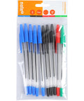Conjunto de 10 esferográficas de traço médio de tinta de várias cores ideais para utilização diária em âmbito escolar, profissional e até em casa. A tinta seca rapidamente e tem uma longa duração. Tampa da cor da tinta com clip para prender nas folhas. Inclui 5 esferográficas azuis, 3 pretas, 1 vermelha e 1 verde.