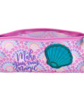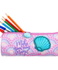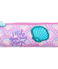 O estojo simples em formato oval com design de sereia é ideal para lápis, canetas e outros acessórios escolares. Com fecho resistente, materiais duráveis e um look mágico, é perfeito para usar na escola ou em casa.