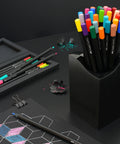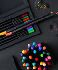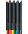 Lápis de cor Black Edition, em tons de cores especialmente selecionados por professores de arte. O seu formato triangular dá maior controlo e conforto aos dedos das crianças. As minas, suaves, com menos quebras, proporcionam melhor cobertura e criam efeitos brilhantes no papel.