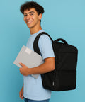 Mochila ergonómica equipada com compartimento para portátil e alças almofadadas, para transportar o material de forma organizada e confortável.