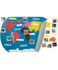Grande planisfério em tecido, cartões e cartas fotográficas para descobrir as maravilhas do mundo. Um cenário lúdico inspirado nos princípios do método Montessori, para introduzir as crianças à geografia de forma natural e lúdica. O kit inclui um mapa do mundo de feltro a ser completado com os continentes e etiquetas com seus nomes, que podem ser fixados com velcro. Também contém cartões dos continentes para serem completados com pequenos cartões com fotografias das maravilhas do mundo. O manual está repleto de sugestões e guiará a criança através do jogo.