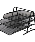 O tabuleiro em metal com suporte e 3 divisórias em preto é a solução prática para manter a secretária organizada. Com um design robusto e elegante, oferece espaço para organizar documentos, papéis e ficheiros de forma eficiente. As divisórias inclinadas facilitam o acesso ao conteúdo, tornando-o perfeito para uso no escritório ou em casa. Uma escolha prática e moderna para manter tudo arrumado e acessível.