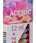 Conjunto de 12 tubos de tinta acrílica de 12ml cada.